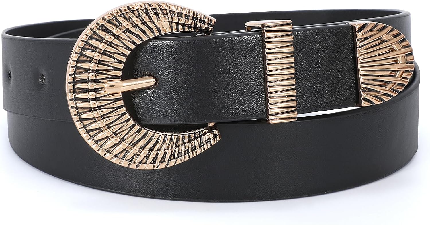 - 🌵Exquisite Metal Buckle:The leather belt for women is designed with vintage western style metal buckle. The buckle width is 2.2”, carving patterns, doing old crafts. The buckle comes in 2 colors: gold/silver. You can choose your favorite color according to your own collocation.